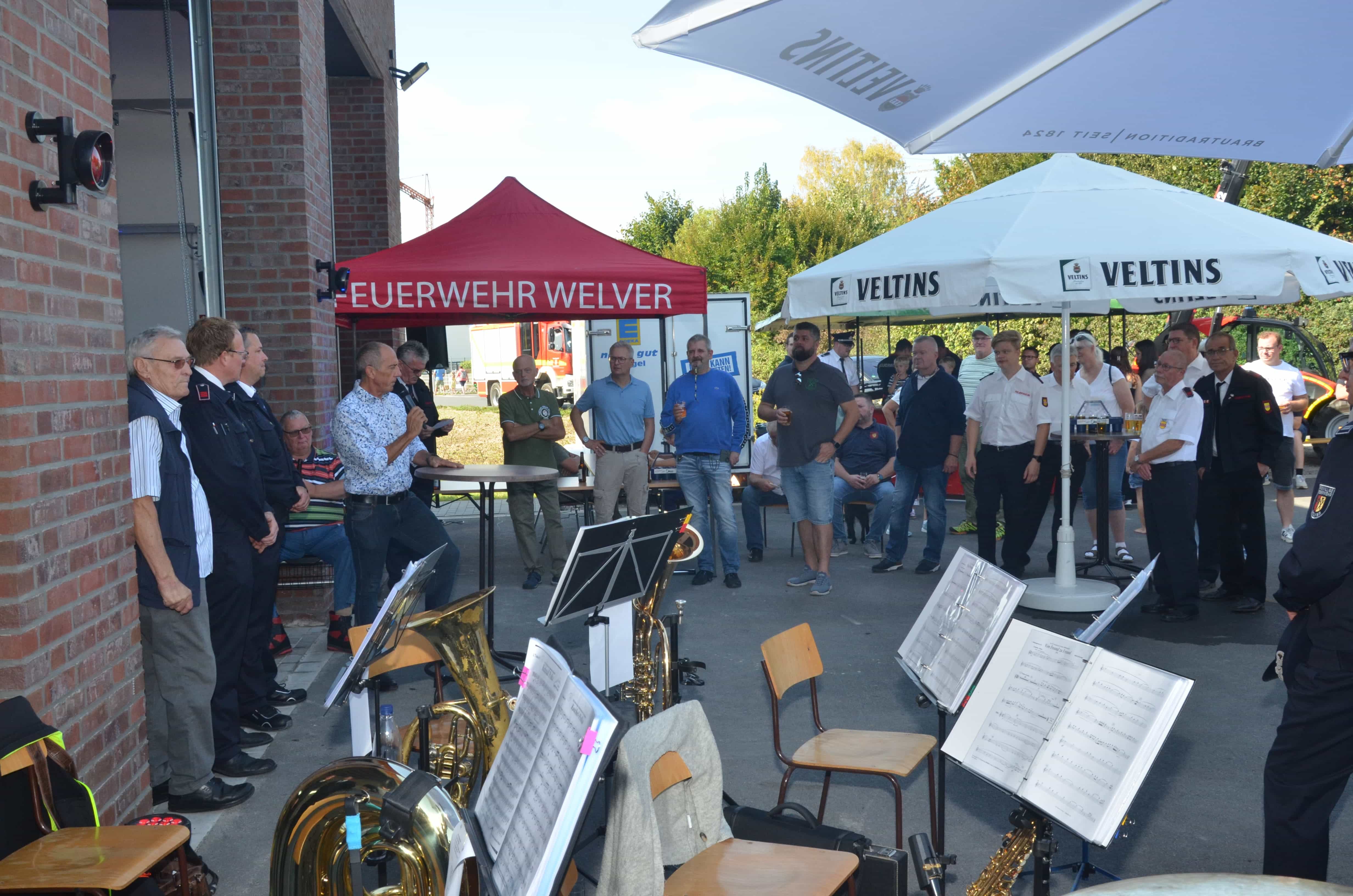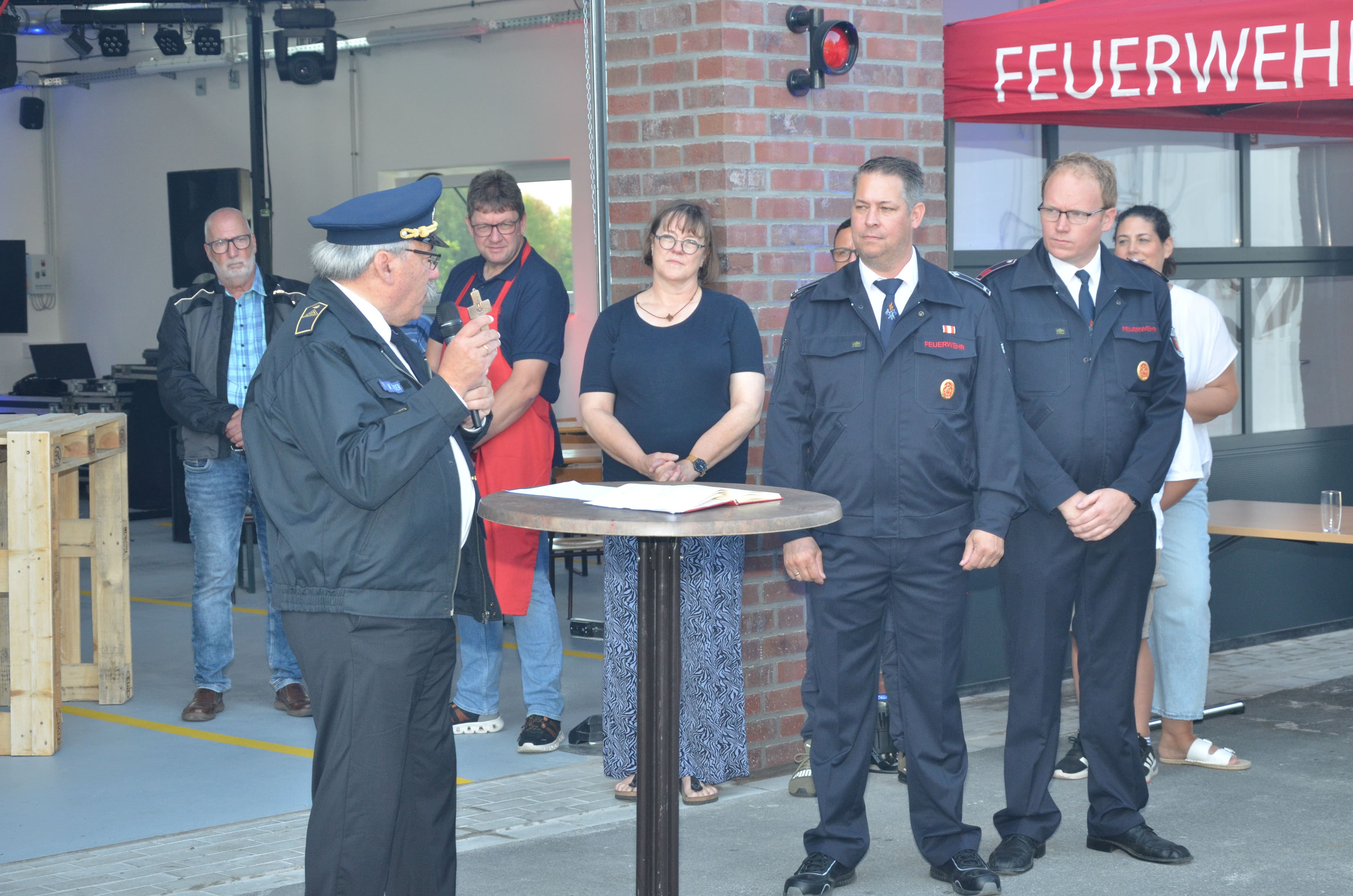 Nach der ökumenischen Segnung durch den evangelischen Pfarrer Werner Vedder sowie Claudia Siepmann vom Pfarrgemeinderat der katholischen Kirchengemeinde St. Maria übergab die Feuerwehrleitung den symbolischen Schlüssel an die Löschgruppenführung.
