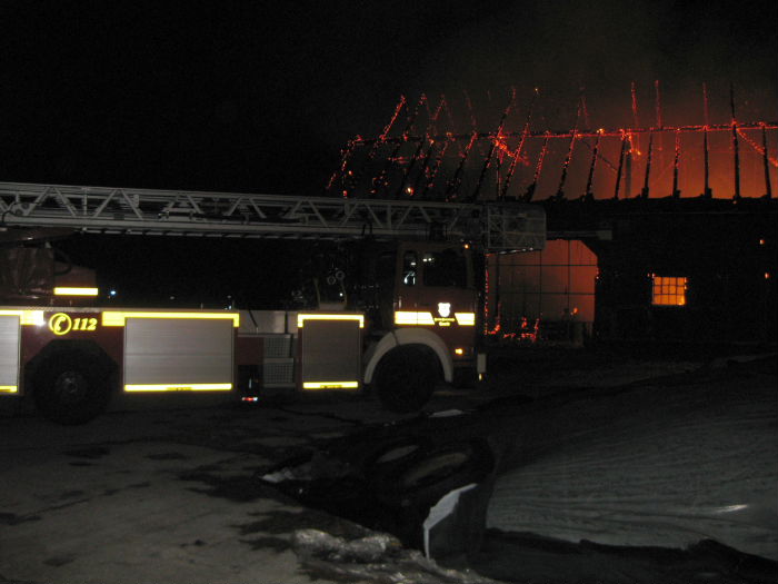 In der Nacht zum Freitag kam es in Berwicke zu einem Großeinsatz der Feuerwehr Welver. Der 1. und 2. Zug wurden gegen 0:00 Uhr zur "Buchenhecke" in Berwicke gerufen. Dort brannte auf einem landwirtschaftlichen Betrieb eine Scheune in voller Ausdehnung. Da sich in der direkt angrenzenden Stallung noch Tiere befunden hatten, wurden diese von den ersteintreffenden Kräften aus Ihren Ställen befreit und auf eine nahe gelegene Weide gebracht. Zur Unterstützung der Feuerwehr Welver wurde auch die Drehleiter aus Soest angefordert. Die ca. 100 Einsatzkräfte schafften es durch einen massiven Wassereinsatz, ein übergreifen auf das angrenzende Wohnhaus zu verhindern. Hierzu kamen neben dem Wenderohr der Drehleiter auch kurzzeitig der Wasserwerfer aus Welver sowie 5 C- Rohre zum Einsatz. Um alle Fahrzeuge mit ausreichend Wasser zu versorgen wurden 2 B-Leitungen zum nächsten Hydranten verlegt, der sich in ca. 500m Entfernung zum Brandobjekt befand. Gegen 2:30 Uhr konnte schließlich „Feuer aus“ gemeldet werden. Da durch das Stroh noch immer wieder einzelne Glutnester entstehen, werden die letzten Einsatzkräfte vermutlich gegen 16:00 Uhr Ihren Einsatz beenden können. Die Einsatzleitung übernahm der Leiter der Wehr Rüdiger Pannock. Einzelne Einsatzabschnitte wurden von BI Carsten Vieregge und BM Thorsten Loer übernommen. Warum die Scheune brannte, in der landwirtschaftliche Maschinen und Stroh untergestellt waren, wird jetzt von der Polizei ermittelt. |